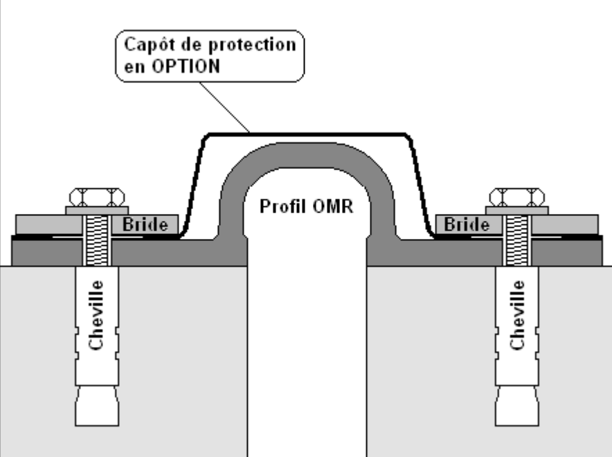 Le profil élastomère et les brides en acier sont fournis pré-percés de trous oblongs avec un entr’axe de 300 mm à partir de 150 mm des extrémités