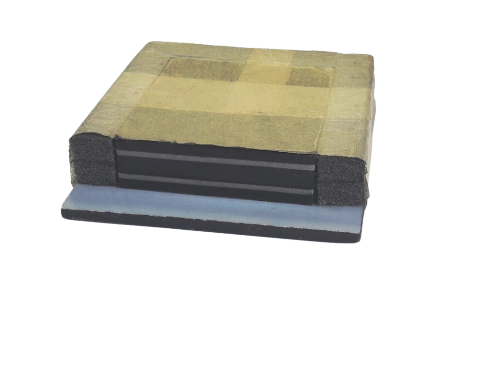 Nos appuis ESOBLOCK AF ce compose d’un block d’élastomère garnie de frettes en acier ferrique, et dans le cas des ESOBLOCK AFG d’une feuille de PTFE siliconé (Téflon) le tout vulcanisé à chaud.